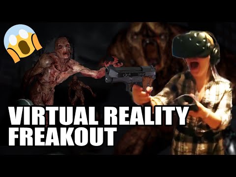 Girl freaks out playing zombie VR game. But survives to the end due to pure adrenaline!